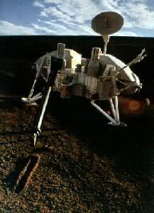 人类对火星上可能存在生命的问题一直怀有希望。苏联在1962~1973年间发射了7个“火星”号探测器,其中1个飞越火星,2个出了故障,2个软着陆失败,2个软着陆后不久通信中断。美国在1964~1975年间共发射6个“水手”号探测器和2个“海盗”号探测器(图8)。前者拍摄了火星的照片,后者抛出着陆舱在火星表面软着陆(见图)。苏、美两国对火星探测的结果表明,在着陆点附近未发现地球类型的生命形式(见地外生命探索)。