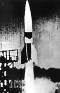V-2导弹于1942年10月3日首次发射成功,飞行180公里(图4)。它是历史上的第一枚弹道导弹。V-2在工程上实现了20世纪初航天先驱者的技术设想,对现代大型火箭的发展起了继往开来的作用。V-2火箭的设计虽然不尽完善,但它却是人类拥有的第一件向地球引力挑战的工具,成为航天发展史上的一个重要的里程碑。