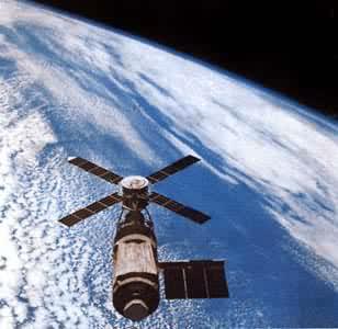 美国国家航空航天局利用“阿波罗”工程节余的“土星”5号运载火箭的末级,将它改造成为试验型航天站,即“天空实验室”。“天空实验室”于1973年5月14日发射进入435公里高的轨道。先后有3批共9名航天员登上“天空实验室”进行生物学、航天医学、太阳物理、天文观测、对地观测和工程技术试验,拍摄了约1000万平方公里地球表面的4万多张照片(见彩图)。“天空实验室”取得的另一重大成果是观察到一次中等程度的太阳耀斑爆发的全过程,并进行了录像,这是研究太阳耀斑的极可贵的资料。根据原来的设计,“天空实验室”应在轨道上运行到80年代初,待航天飞机研制成功后由航天飞机将其回收,但由于1978~1979年间太阳黑子活动加剧,大气层略有扩张,致使“天空实验室”在轨道上的阻力增加,于1979年7月11日提前坠入大气层烧毁。