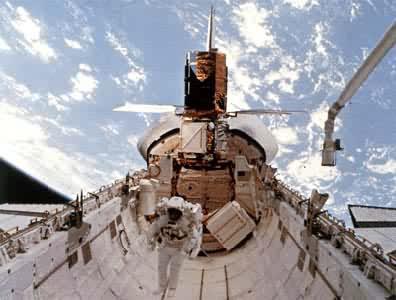 70年代初,美国曾计划在航天飞机上装备一个能进行精密加工、制造高强度材料、提炼高纯度单晶体和某些生物制品的航天器。后因经费不足,遂与欧洲空间局达成协议,由西欧国家按照美国航天飞机货舱的尺寸和承载能力研制“空间实验室”。“空间实验室”由一个圆柱形增压舱和一个敞开的仪器舱组成。前者是航天员的生活和工作场所,装有生命保障系统、数据处理设备和小型专用仪器设备。1983年11月28日“空间实验室”1号由“哥伦比亚”号航天飞机运送入轨(图10)。联邦德国专家也参加了实验室的工作。“空间实验室”的研制成功为美国国家航空航天局提供了一个重要的航天器,也使西欧开始直接参加载人航天活动。 携带“空间实验室”的航天飞机