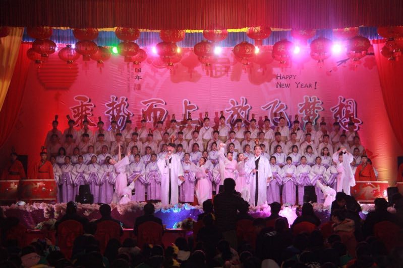 阵阵寒风挡不住大家喜迎新年的热情,经典朗诵、歌舞小品、大合唱等精彩的节目赢得了观众和评委们的一致好评,也让同学们眼花缭乱。歌声、笑声、掌声、欢呼声交融在一起,仿佛全体师生的希望与热情都在此刻被点燃!尽管天气寒冷,但是喜庆欢乐的气氛洋溢着整个礼堂,笼罩着每一位师生,三个小时的欢声笑语给全体观众及全校师生留下了美好的记忆。