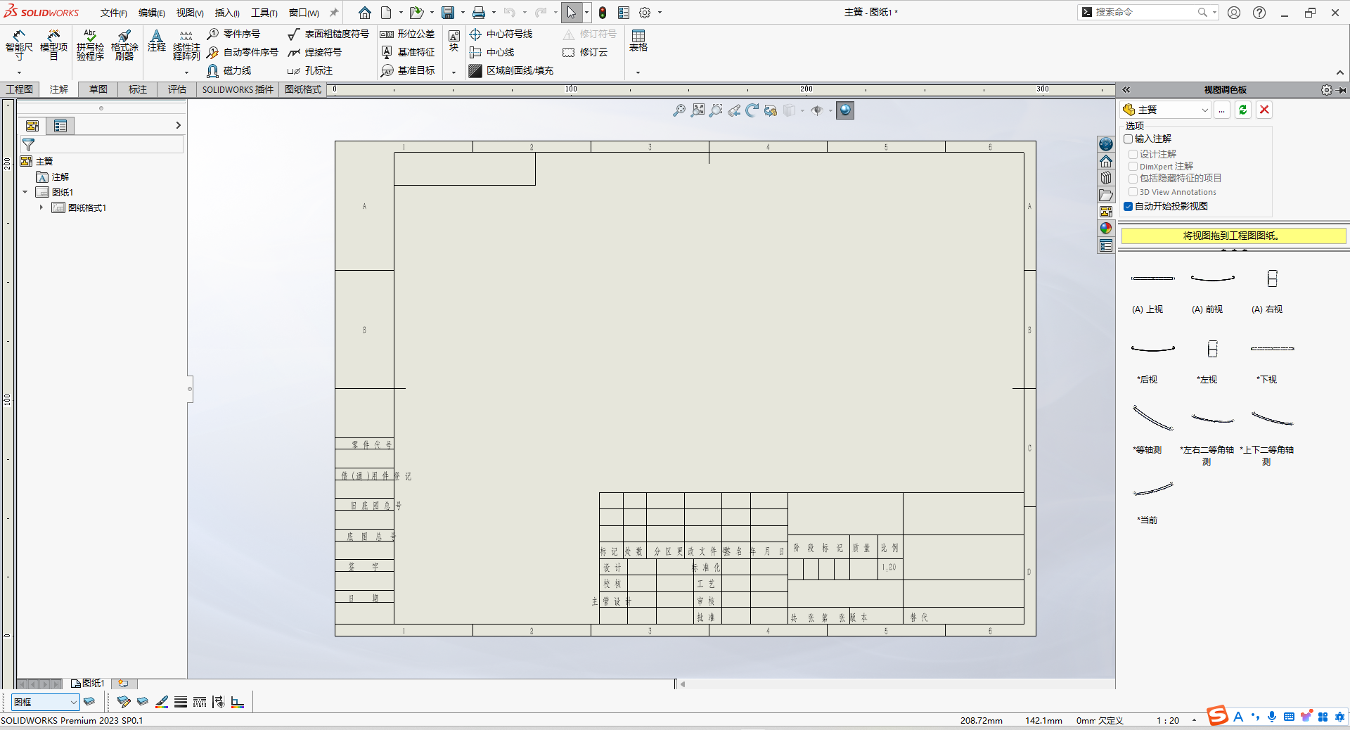 片刻加载,软件则会跳转到“工程图”模式