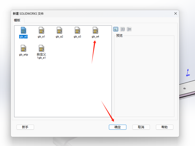 随后软件会弹出弹窗,选择工程图模板,可根据具体需要,这里以“