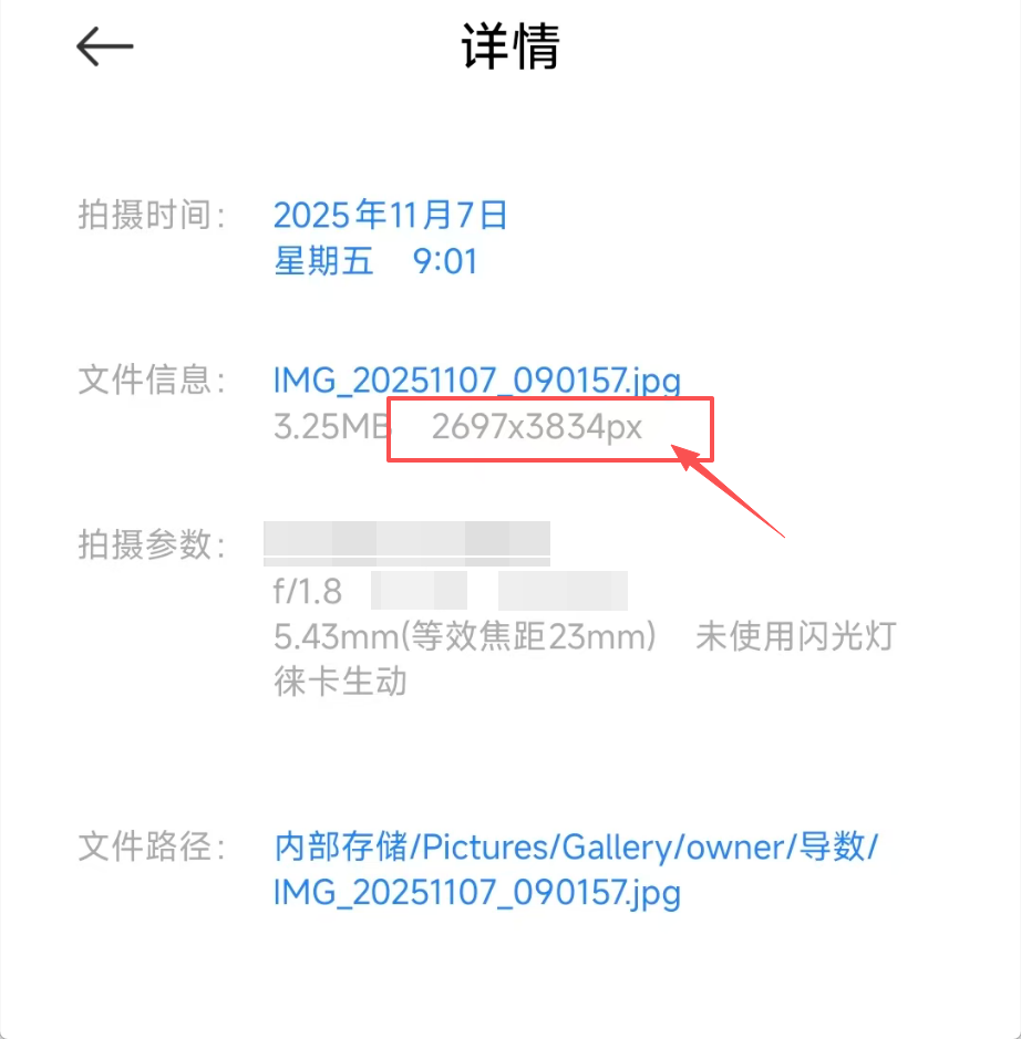 压缩前的原始图片宽高像素大小 即混淆图片上传社交媒体平台前 或者被社交媒体转发前 的原始像素宽高比,可在手机相册的照片信息查看 ,或者PC电脑端的右键文件属性查看