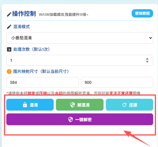 - 原图要求:请使用未经转发、压缩或添加水印的原图进行解密混淆,否则可能无法正常还原图像